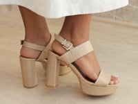 SANDALIA MÓNICA TACÓN 10CM PLATAFORMA LINO NATURAL